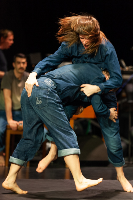 Im Halbdunkel, erhöht auf einem Podest oder einem Bett, sehen wir zwei Paar Beine sich ineinander verhaken. Kampf oder Liebesspiel der anfangs im Dunkeln verborgenen Personen? Musik setzt ein, Gesang stimmt an. Alexandra Holtschs elektronische Klänge reiben sich an Hubert Wilds Countertenorstimme. Lea Martini und Sheena McGrandles, nun im Scheinwerferlicht sichtbar, tragen die Schichten des Podests ab, setzen die einzelnen Matten zu einer Aktionsfläche am Boden zusammen. Kniend umschlingen sie sich mit den Armen, ziehen sich gegenseitig die Beine weg, stehen auf, gehen auseinander, ohne dass Sieg oder Niederlage auszumachen wären. Die Matten werden an eine andere Stelle geschoben. Der Tänzer Enis Turan tritt zu einer der beiden Tänzerinnen. Frau gegen Frau, Mann gegen Frau. Das Geschlecht macht in der Begegnung keinen Unterschied. Jeder neue Kampf, jede neue Umarmung markiert auf der Bühne einen neuen Ort, bringt neue Griffe und Würfe hervor. Mal erscheint es wie eine Übung, als gelte es, die Regeln zu prüfen, begleitet von einem kurzen Aufatmen, Abstand nehmen, um das Gegenüber aus der Distanz zu betrachten. Nicht immer handelt es sich um einen fairen Zweikampf. Erniedrigung und sexuell konnotierte Übergriffigkeit werden angedeutet. Oder ist es ein Spiel?