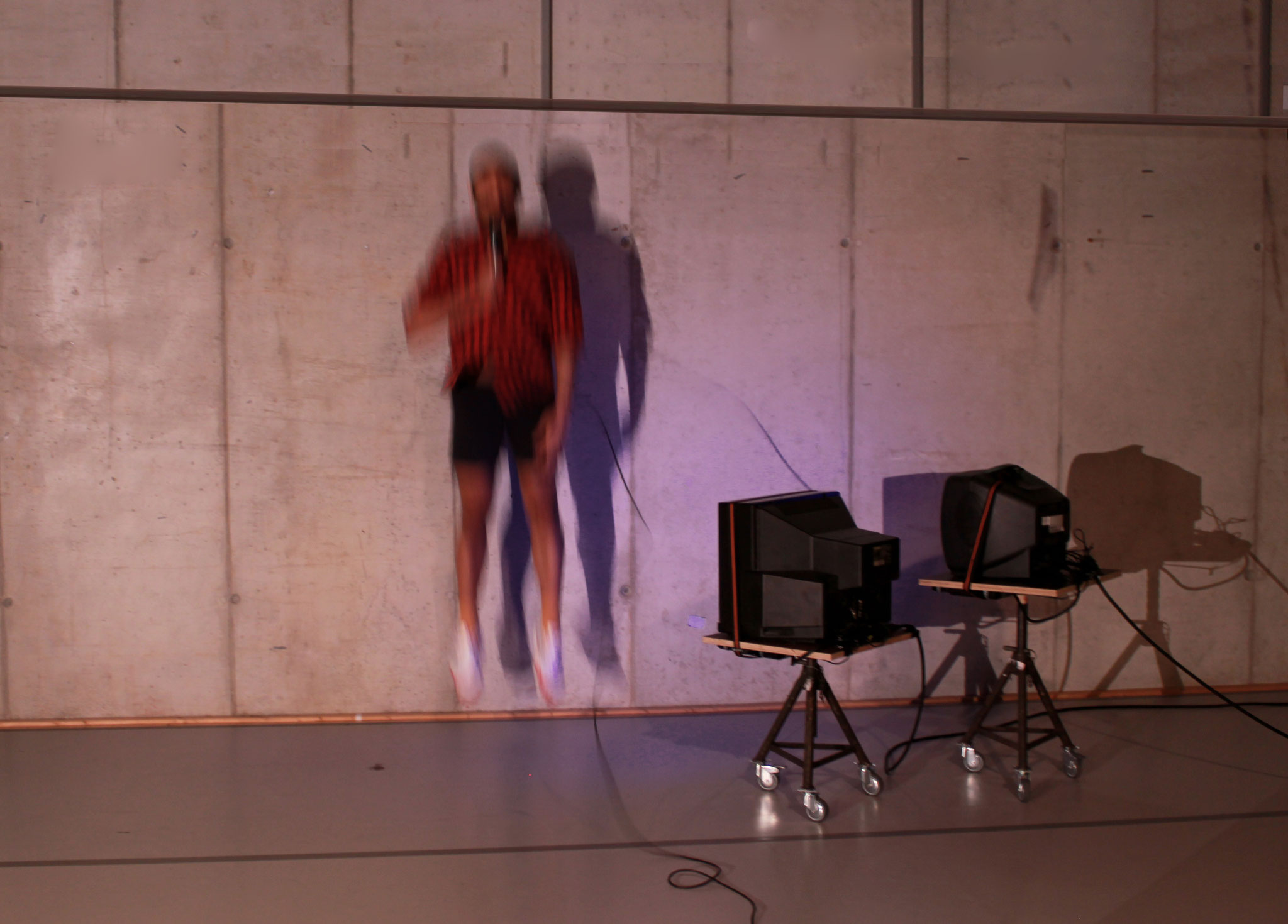 Through interviews with former ensemble dancers and music excerpts, the historic material and memories are deconstructed and then assembled on stage. Loose movement sketches are spatially composed within a changing landscape of screened video talks and sound, and create a collage of the selected roles in a form of subjective reconstruction inspired by the interviewees. Within his movement exploration, dancer Luis Alberto Rodriguez is searching for a choreographic physicality beyond gender. The restrictions due to copyrights has substantially influenced working with the historical material and the use of original excerpts of video, movement, and music. No [‚rait] of spring indicates these gaps, but also utilizes them in order to find new ways of reconstruction. A composition of the collected material between dance performance, image and sound installation, the piece invites the audience on an associative and emotional journey through tags of memory, movement fragments and sounds, that enables everyone to find their individual access to the historical material.