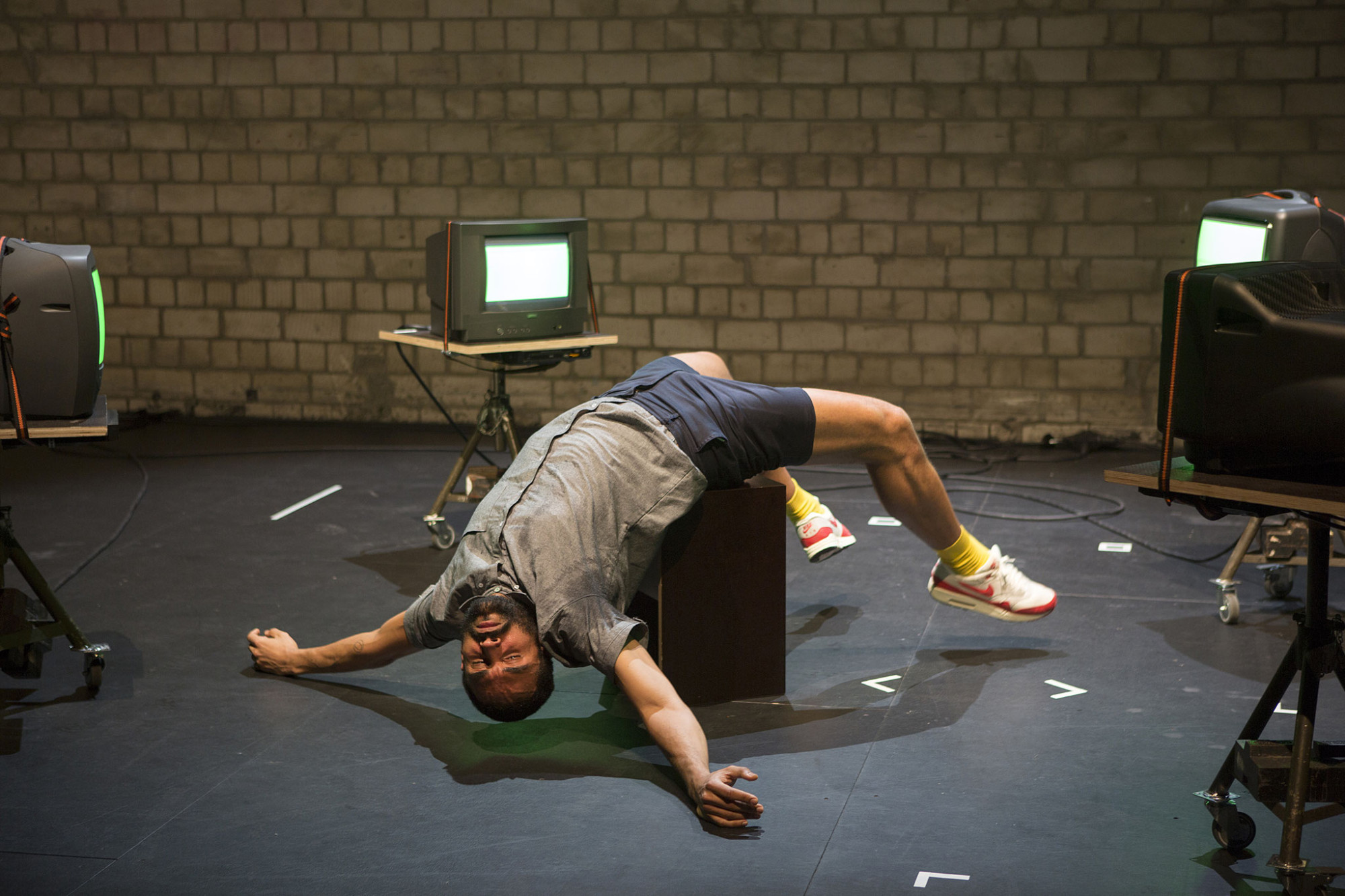 Through interviews with former ensemble dancers and music excerpts, the historic material and memories are deconstructed and then assembled on stage. Loose movement sketches are spatially composed within a changing landscape of screened video talks and sound, and create a collage of the selected roles in a form of subjective reconstruction inspired by the interviewees. Within his movement exploration, dancer Luis Alberto Rodriguez is searching for a choreographic physicality beyond gender. The restrictions due to copyrights has substantially influenced working with the historical material and the use of original excerpts of video, movement, and music. No [‚rait] of spring indicates these gaps, but also utilizes them in order to find new ways of reconstruction. A composition of the collected material between dance performance, image and sound installation, the piece invites the audience on an associative and emotional journey through tags of memory, movement fragments and sounds, that enables everyone to find their individual access to the historical material.